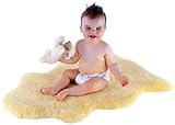 La peau d'agneau favorise le sommeil et la détente du bébé. Utilisez-la pendant quelque temps comme oreiller afin qu'elle s'imprègne de votre odeur, bébé adorera. La peau d'agneau peut se mettre dans le lit ou dans la poussette, servir de tapis de jeux, de lit à emmener partout... Vous pouvez y mettre votre bébé tout nu, il appréciera la douceur du contact avec la peau, ce qui l'aide à prendre conscience de son corps. La peau d'agneau a un excellent pouvoir thermorégulateur : elle garde au chaud en hiver et absorbe la chaleur en été. La peau d'agneau est facile à entretenir car elle possède des propriétés autonettoyantes grâce à sa faible charge en énergie statique, en général il suffit de l'aérer régulièrement et de la brosser. Si toutefois vous avez des tâches à nettoyer, frottez les avec un shampooing spécifique pour laine contenant de la lanoline. Ces peaux d'agneau n'ont subi aucun traitement au chrome, chlore ou autre produit chimique polluant. Le tannage Relugan est aussi appelé tannage médical sans chrome. Ce procédé respectueux de l'environnement donne à la peau une belle couleur dorée. Les peaux sont lavables à froid à la main ou en machine avec un shampoing spécial laine contenant de la lanoline. Ne pas sécher près d'une source de chaleur. Etirez et roulez la peau pendant le séchage. Essayez tout de même d'éviter les lavages. Elles sont livrées dans un sac de rangement en coton blanc. Poils courts: environ 3 cm 60-70 cm