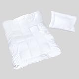 La couette piquée très douce et l'oreiller particulièrement plat et doux sont remplis de fibres creuses en polyester spirale et siliconées. La couche en silicone lisse les fibres pour qu'elles ne feutrent pas, qu'elles se chargent moins en électricité électrostatique et qu'elles retrouvent leur forme après utilisation. Housse en microfibre. Housse : 100 % polyester Couleur : blanc Lavable à 60°C Passe au sèche-linge Contenu Oreiller Dimensions : 35 x 40 cm Garnissage : 50 g Couette piquée Dimensions : 80 x 80 cm Garnissage : 220 g Les atouts régule l'humidité compense les écarts de températures très légère housse en microfibre douce pour la peau piquage carreaux 2 pièces Certifié Oeko-Tex® Standard 100 N° SHHO 061528 TESTEX...